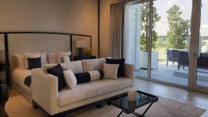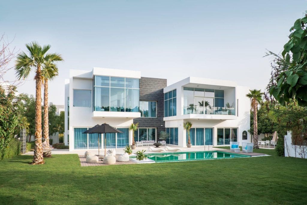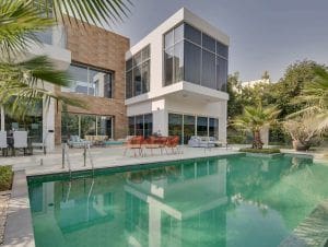 The Nest is a community in the family-friendly area of Al Barari in Dubailand. Developed by Al Barari Dubai, the project includes 99 villas with floor plans featuring four, five, and six-bedroom layouts. Units range in size from 6,600 sq. ft. (614 sq. m.) to 19,238 sq. ft. (1,788 sq. m.). Villas feature contemporary design, and each unit comes with a balcony, landscaped garden, spacious terrace with barbecue area, pergola, covered parking, and a private swimming pool. The Nest offers units that range in price from AED 7,750,000 (USD 2,110,000) to AED 33,000,000 (USD 8,985,000).