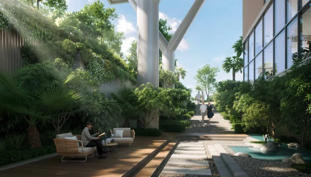 Residents can explore a variety of aquatic amenities, including an Olympic-style lap pool, family leisure pool, plunge pool, and kids pool, rounded by cabanas and landscaped gardens.