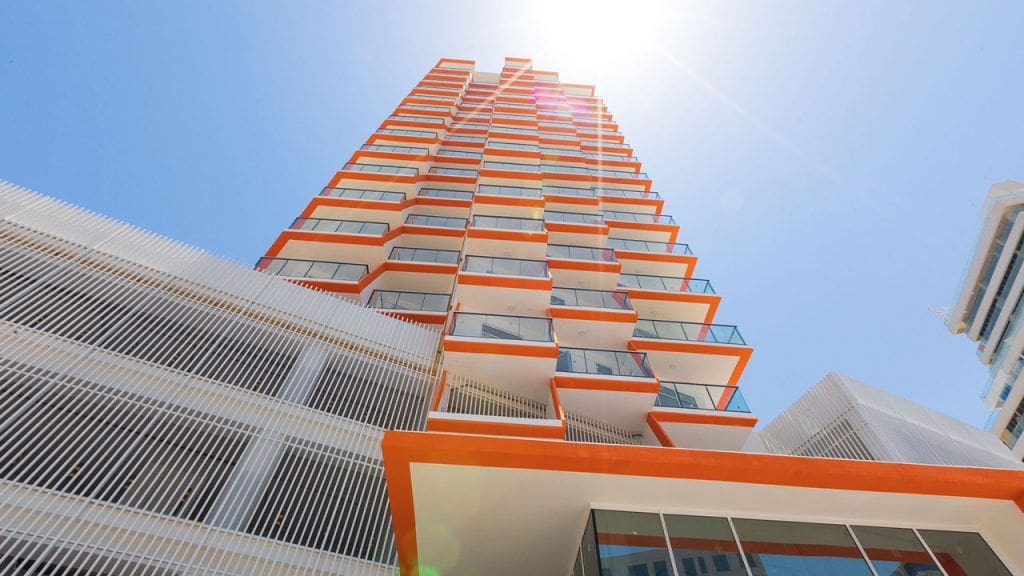 Binghatti Gateway is a residential complex located in the Al Jaddaf district of Dubai. It represents the second phase of the Dubai Healthcare City development. The 18-storey building was developed by Binghatti Developers, and Silver Stone Engineering Consultants executed the architectural design. The complex was commissioned in 2021 and consists of 180 residential units. Binghatti Gateway offers two- and three-bedroom apartments featuring various layouts. Units range in size from 735 sq. ft. (68 sq. m) to 2,000 sq. ft. (186 sq. m). Panoramic windows offer beautiful views of the surrounding area, Dubai Creek, and the Dubai skyline.