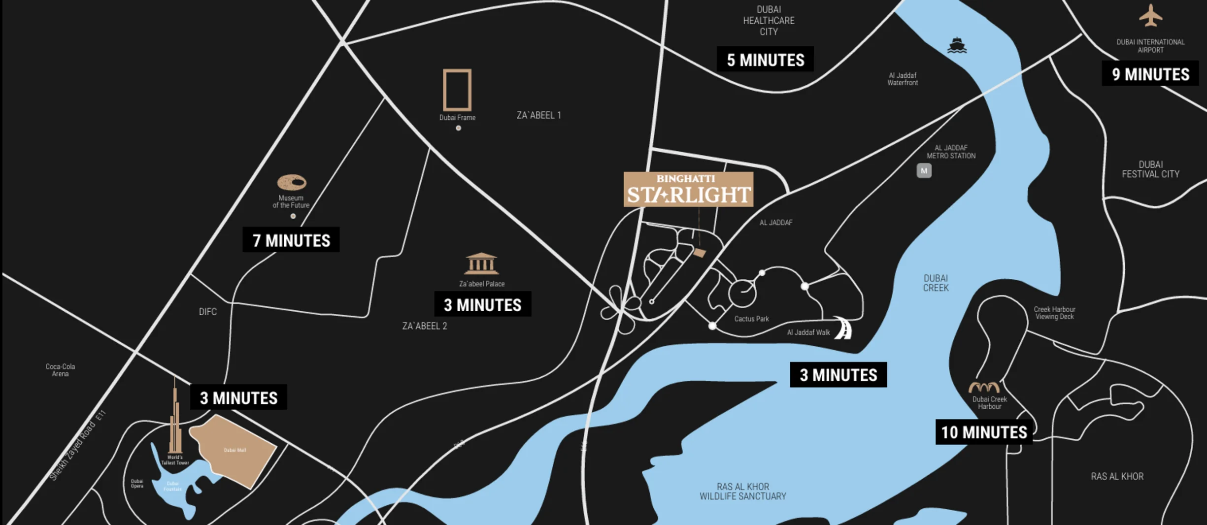 Yes. As well as Al Jaddaf's existing high return on investment and appreciation potential, Binghatti Starlight is excellently located by Dubai Creek, with Downtown and Dubai Maritime City all in easy reach.