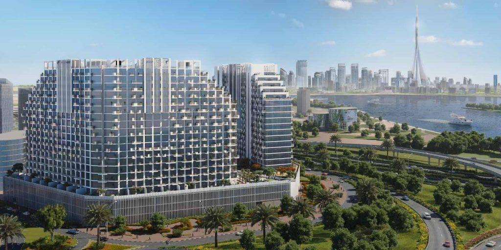Creek Views 2 is a 20-storey residential complex located in Al Jaddaf, Dubai. There are a total of 587 units, including studios and one- and two-bedroom apartments. The project was developed by Azizi Developments, and the architectural design was overseen by 360 Degrees Architectural Design Consultancy. Construction of the property began in August 2020. Properties range in size from 450 sq. ft. (42 sq. m) to 1,085 sq. ft. (101 sq. m). Studios have a starting price of AED 408,000 (USD 111,000), and two-bedroom apartments have a starting price of AED 758,000 (USD 206,000).