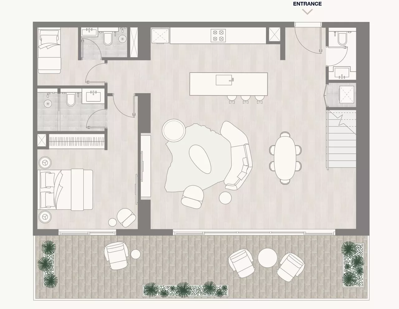 Providing a serene lifestyle combined with the utmost serenity, the high-end residential complex will evoke the rugged shapes of a wadi, with stunning cascading terraces which will offer plenty of outdoor space for families. At the same time, the 2 towers will be linked with a triple-height zen-like entrance lobby.