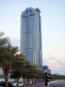 Beach Towers is a mixed-use development located in Al Khan, Sharjah. The complex consists of two skyscrapers: Beach Tower 1 with 45 floors and Beach Tower 2 with 48 floors. The towers are situated 10 minutes apart.