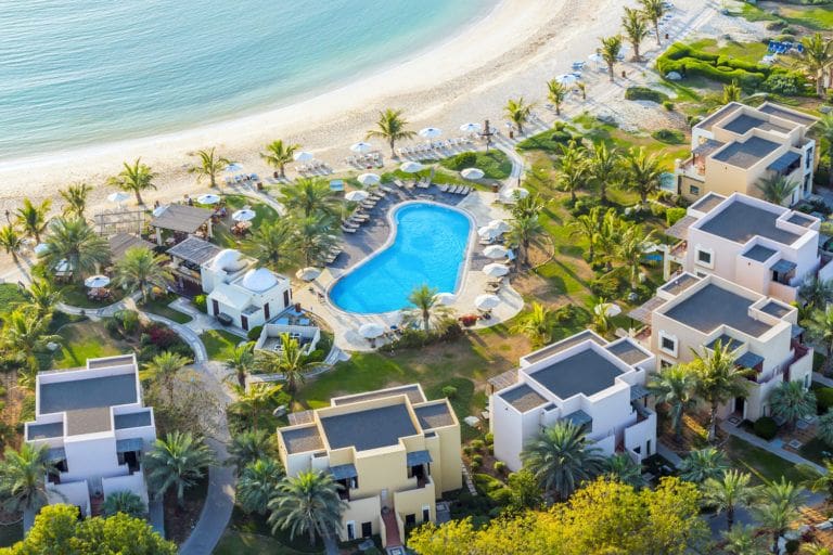 Hilton Ras Al Khaimah is a five-star hotel with an exclusive 1.5 km private beach. It offers serviced apartments and villas. Residents can enjoy a spa, outdoor swimming pools, a fitness centre, and restaurants.