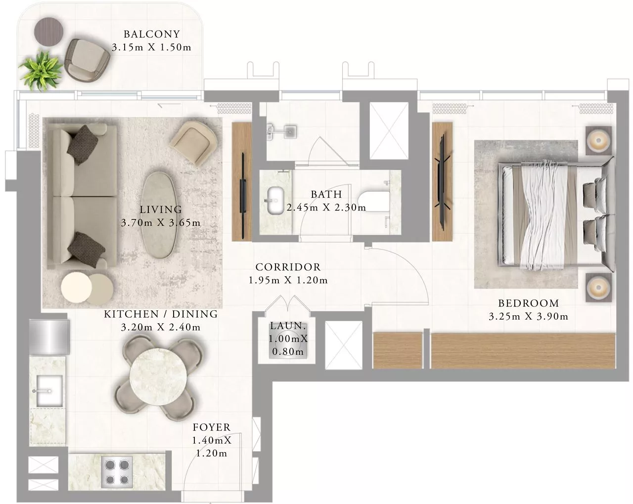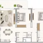 As of April 2024, the initial cost for a 1-bedroom apartment and a 3-bedroom townhouse is AED 1.8M (USD 490K) and AED 7.89M (USD 2.14M).