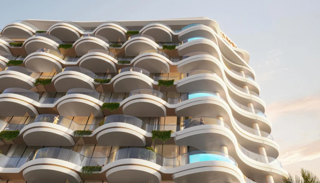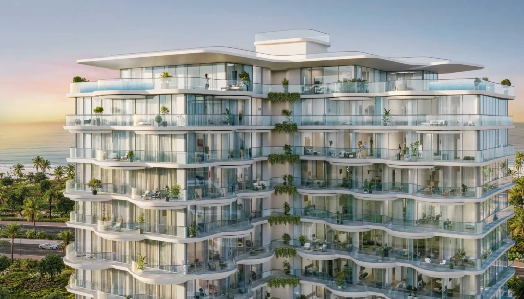 Each apartment features balconies shaped like gentle sea waves, offering stunning Gulf views while letting in natural light and fresh air.