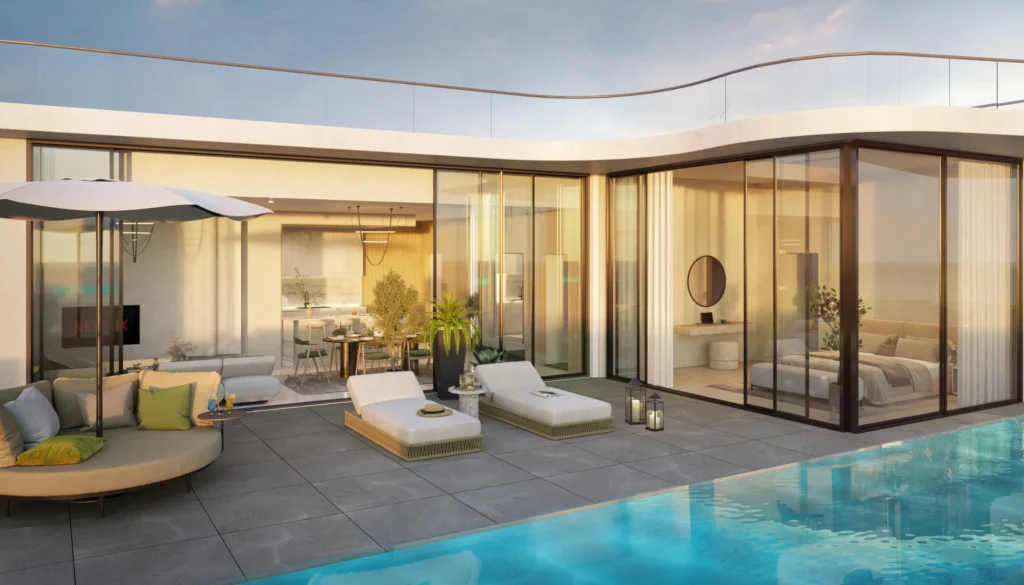 Aqua Maya by BNW Developments is a boutique coastal residence on Al Marjan Island, Ras Al Khaimah, combining modern design with the calm of the Arabian Gulf.