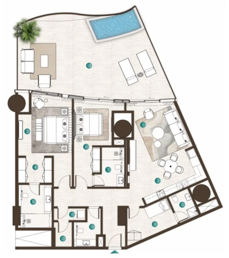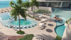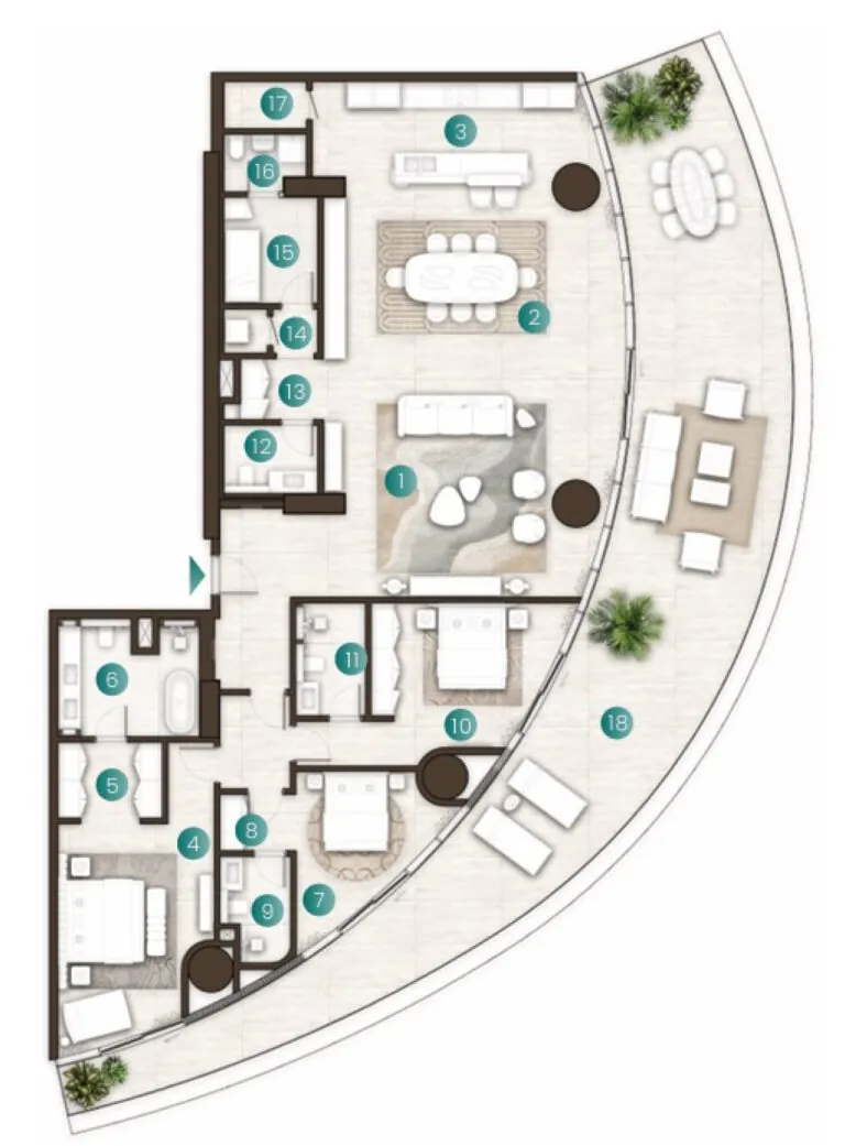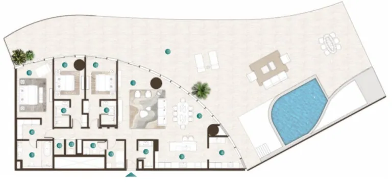 Exclusive direct beach access from the complex offers residents a seamless connection to pristine shoreline, providing a premium coastal lifestyle with stunning views of the azure sea.