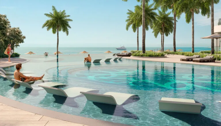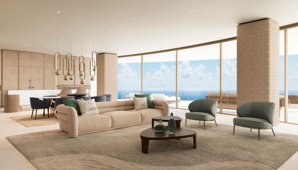 La Mer offers 1-4 bedroom apartments, penthouses, chalets, and two exclusive villas, ranging from 874 to 14,484 sq. ft.