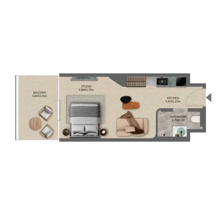 Prices at Palazzo Tissoli start from AED 1.1M for studios and AED 2.1M for one-bedroom apartments, with variations based on layout and size.