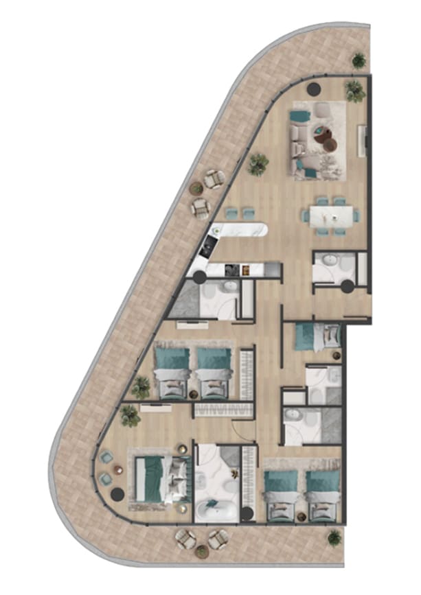 Pelagia is an architectural masterpiece by BNW Developments on Al Marjan Island, inspired by the ocean’s mesmerising beauty. Its flowing balconies echo the rhythmic movement of the waves, creating a striking and elegant silhouette.