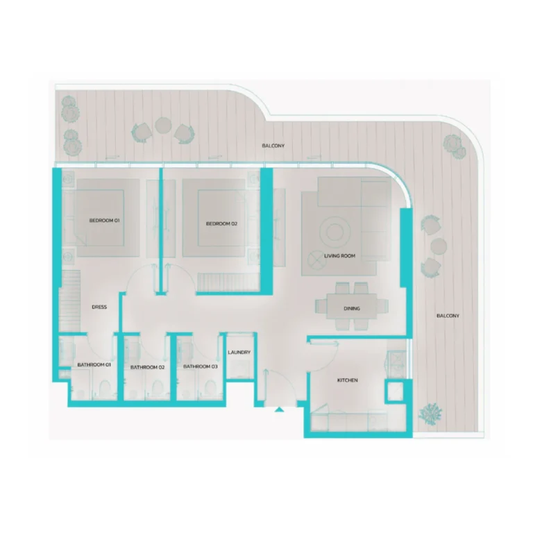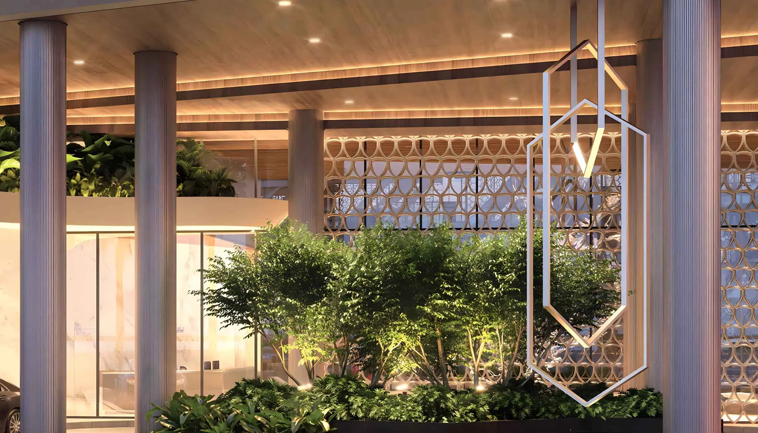 The development consists of one residential building configured as 2B+G+15 floors, complemented by a separate cluster of private villas and mansions, all unified by a shared resort environment. A total of 378 fully furnished residences are planned, including studios, 1BR–3BR apartments, 3BR penthouses, 3BR villas, and 5BR mansions. Unit sizes range from approximately 406 sq.ft to 9,189 sq.ft. Architectural design is inspired by coastal landscapes, expressed through cascading terraces and landscaped sky gardens, positioning the project as both a lifestyle residence and a long-term investment asset.