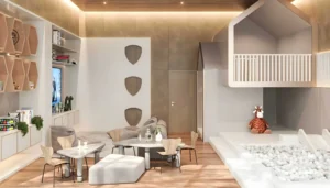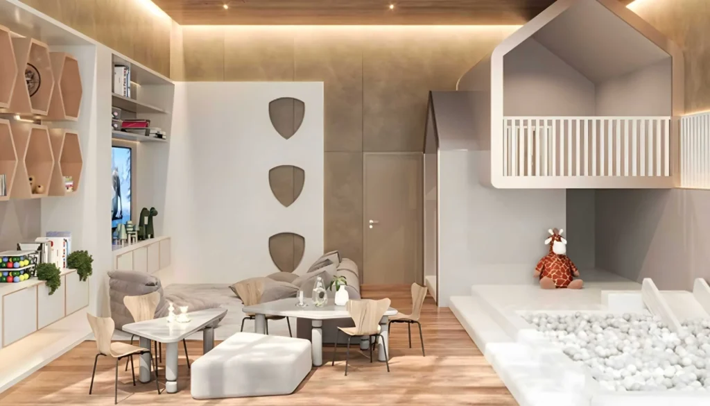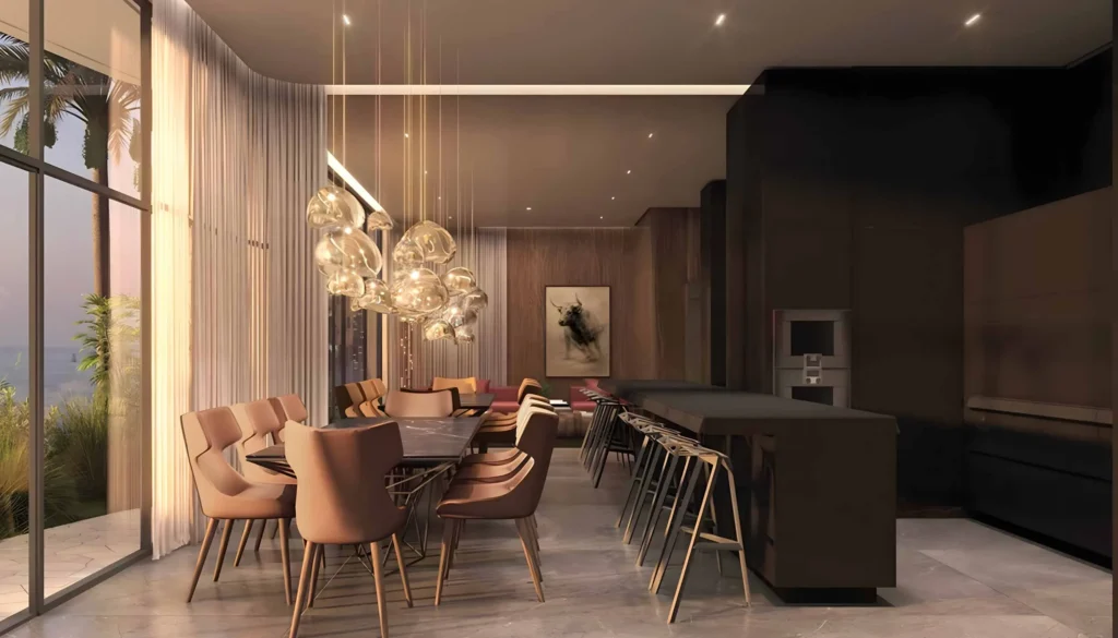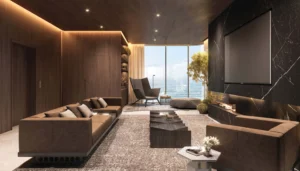 The project offers a wide range of residential formats, including studios, 1–3 bedroom apartments, three-bedroom penthouses, three-bedroom villas, and five-bedroom mansions. Unit sizes range from approximately 410 to 9,190 sq.ft, depending on layout and typology. Studios include storage space, with selected layouts offering private pools. One- to three-bedroom residences feature 2–3 bathrooms, guest powder rooms, and laundry areas, with select units offering walk-in wardrobes and private pools. Three-bedroom penthouses include private pools and staff rooms. G+3 villas and mansions feature private gardens and pools, multiple lounges, fitness rooms, home offices, laundry rooms, storage areas, and staff facilities. All residences are fully furnished and equipped with smart home systems for climate control, lighting, and security.