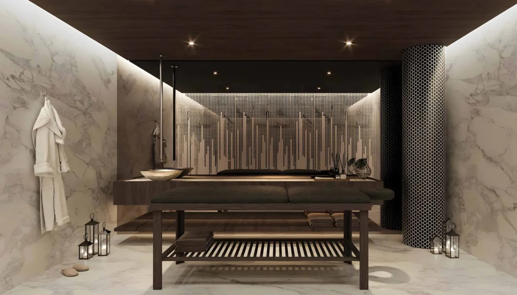 The amenity concept is designed to support daily living in a calm coastal environment, combining wellness, leisure, and family-oriented facilities within a private residential setting.