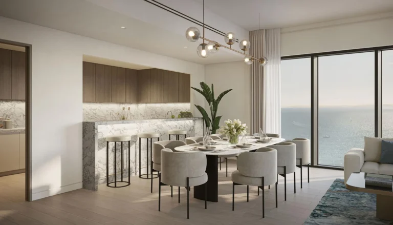 Prices start from AED 1.65 million for 1-bedroom apartments, with variations depending on unit size, layout, and sea or city view. Larger 3–4 bedroom units and duplexes are priced higher due to size and premium positioning.