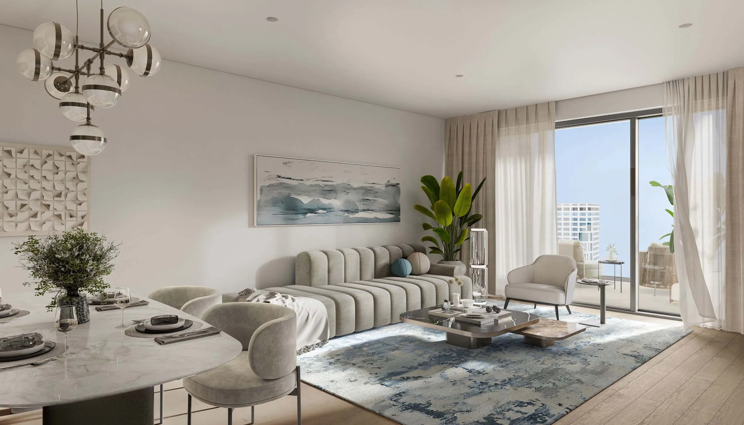 Sunstone offers 1–4 bedroom apartments and duplexes, featuring spacious layouts ranging from 1,066 sq.ft to 5,220 sq.ft. Each unit is thoughtfully designed with balconies, panoramic views, and luxury finishes.