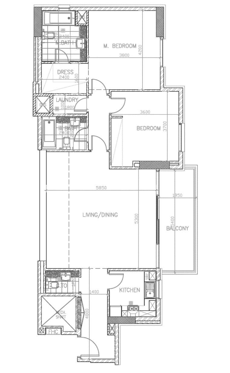 There are 1-, 2- or 3- bedroom apartments with a total area of 764 to 1800 sq. ft. Every apartment features bedrooms, bathrooms, kitchens, dining and living areas as well as dressing rooms and guest bathrooms. Some residences have a room for staff while the balconies are planned as recreation areas.
