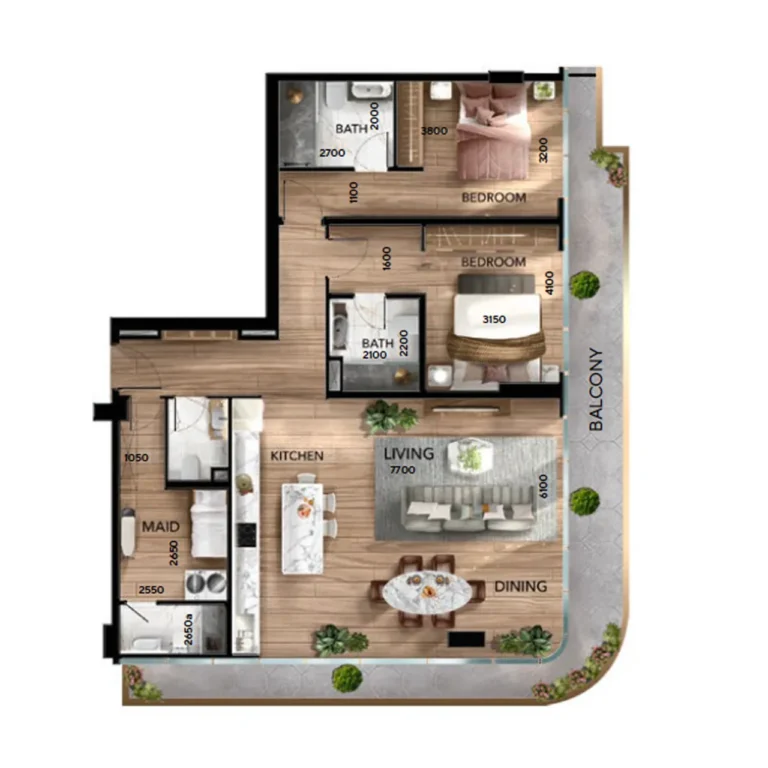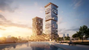 Common podium with verdant areas, refreshing pools, and wellness zones giving residents and professionals a leisurely urban escape.