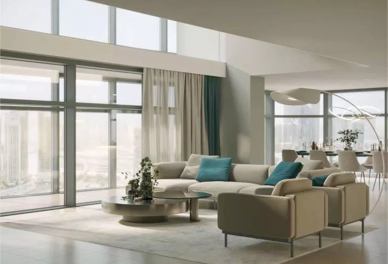 The residential tower includes seven podium levels and 42 floors, with the total number of units in Radiant Height constituting 286. Properties in the modern development are presented by elite apartments with 1, 2, 3 and 6 bedrooms, and have generous living areas ranging from 920 sq. ft to a generous 2,300 sq. ft.