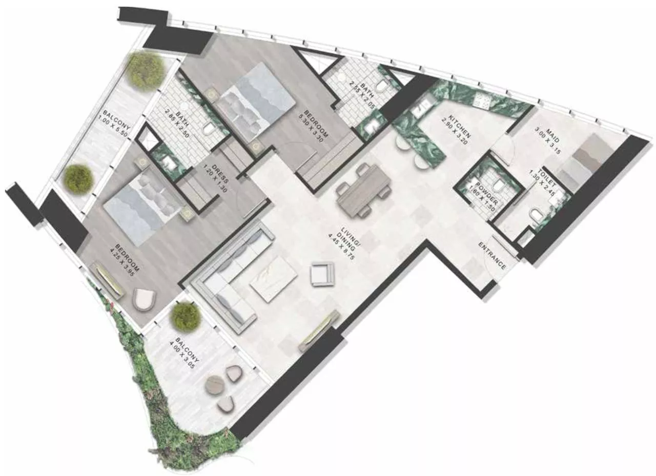 Facing the luscious greenery of Safa Park, Safa One is an ultra-luxury residential complex by the UAE-based real estate developer, DAMAC Properties. The new development will be located in the covetous area of Al Safa and will consist of 2 supertall towers, with 60 and 44 floors, which will be designed by none other than de GRISOGONO, the world-renowned jewellery brand. Safa One will feature a bespoke selection of high-end 1-5 bedroom apartments, as well as duplexes and penthouses, with a minimum area of 843 sq. ft, overlooking the Dubai Canal.