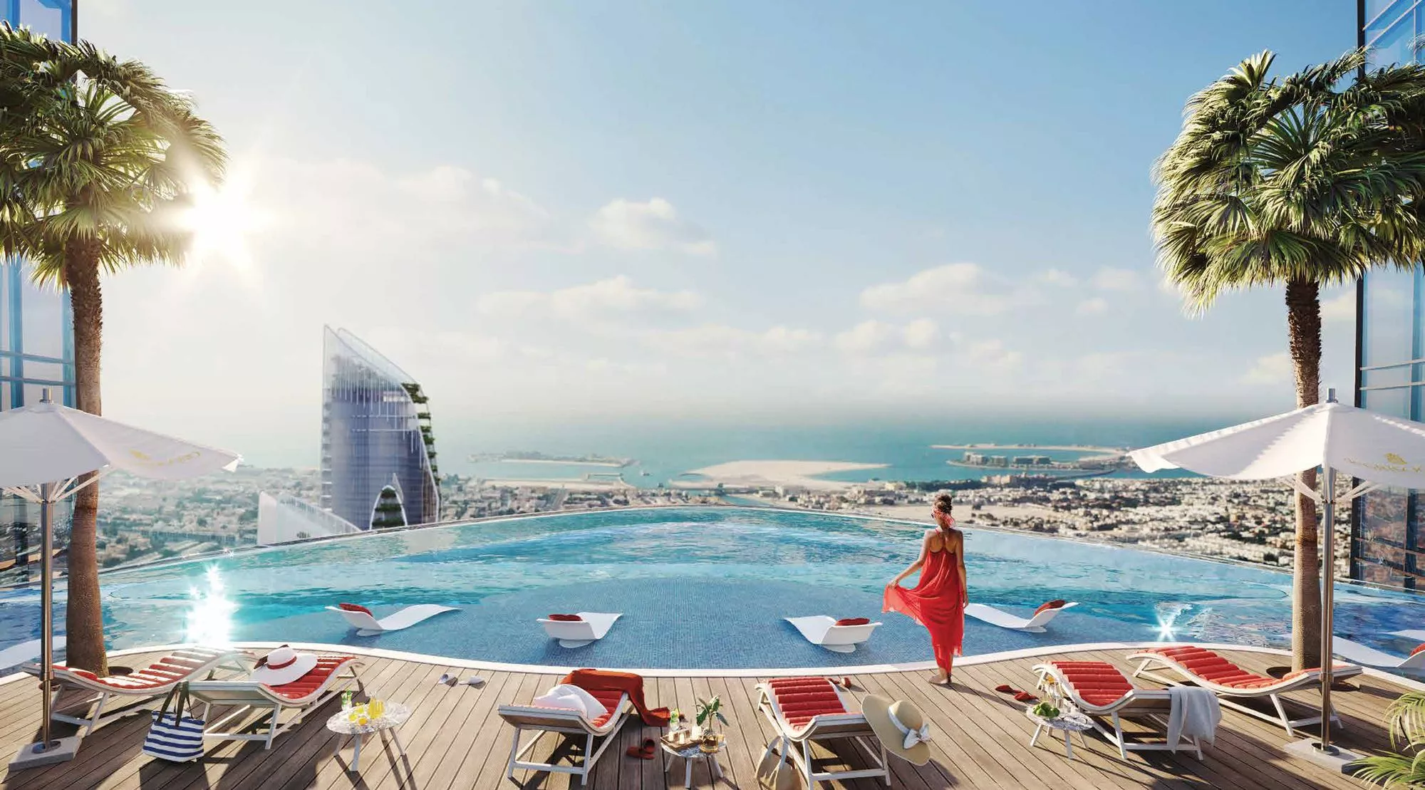 For the utmost convenience of homeowners, Safa One and Safa Two will be connected at the top by an electric cabin, which will overlook the Sheikh Zayed Road. In addition, residents will be treated to a sensational 360-degree panoramic view of Dubai on an edge walk deck surrounding the top of the building. Meanwhile, in the heart of the tower will be a floating infinity pool with a diamond surface that will sparkle at night. Not forgetting a glass slide and a one-of-a-kind fog forest with red lighting effects, complemented by F&B venues and pathways. As well as the above, to deliver the ultimate resort-like experiences, Safa Two will house a total of 4 beach-inspired pools.