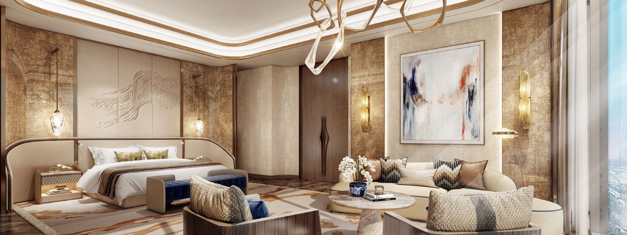 There are 122 designer residences: gorgeous 2-3 bedroom apartments, four 4-bedroom Sky Palaces and two 4-bedroom Sky Mansions.