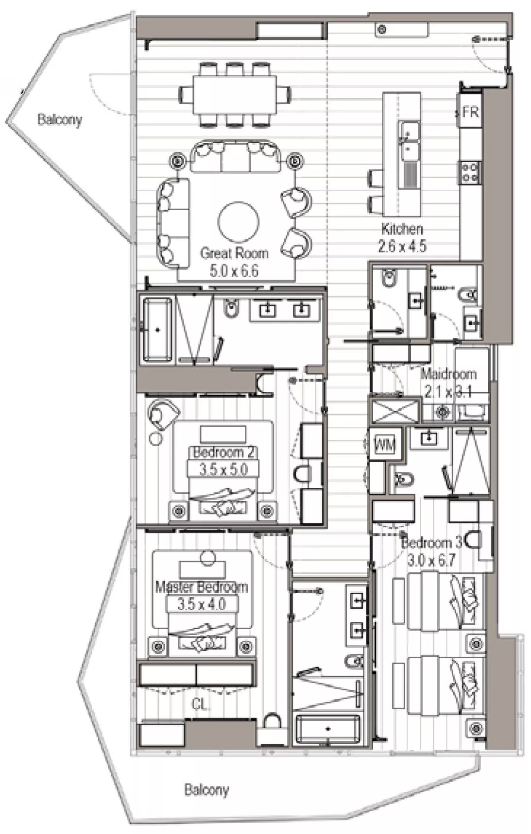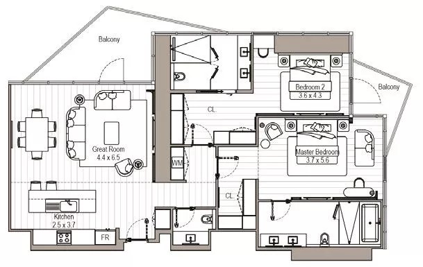 There are 122 designer residences: gorgeous 2-3 bedroom apartments, four 4-bedroom Sky Palaces and two 4-bedroom Sky Mansions.