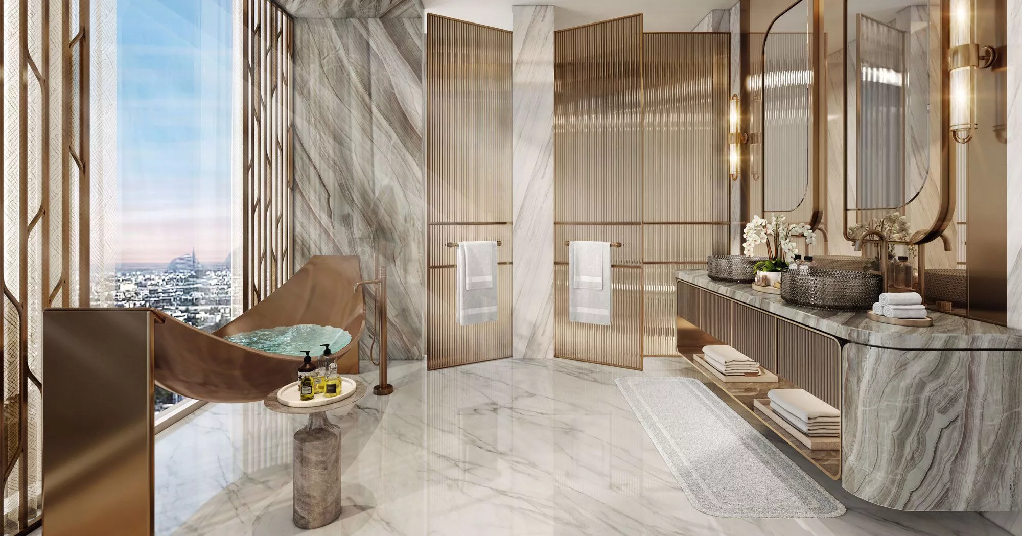 Embodying both elegance and glamour, the living spaces and furnishings will be curated by the award-winning interior designer, Kristina Zanic. The units will boast rich marble textures and leather, complemented by walnut wood and bronze medal accents, which will add a flair of sophistication. Residents will be able to enjoy captivating views of the sea and the city’s dramatic skyline from the comfort of their homes.