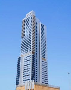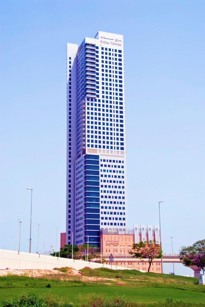 Sidra Tower is a 45-storey mixed-use development located on Sheikh Zayed Road in Al Sufouh, Dubai. The project is part of the Al Sufouh 1 development. Residential and commercial units are available to buy and rent. There is a business centre, shops, and retail outlets situated on the lower floors of the building. The upper 23 floors are home to Fraser Suites Hotel and Apartments. There are a total of 180 residential units, including studios and one- to three-bedroom hotel apartments. Properties range in size from 517 sq. ft. to 2,960 sq. ft. Kitchens have microwaves, gas cookers, refrigerators, cooking utensils, and coffee makers.