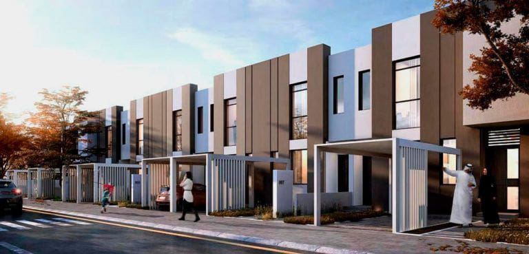 Nasma Residences is the most developed complex in the area and consists of 1,100 properties. Some of the units have already been commissioned, while others are still under construction. The community has an abundance of green areas with cycling and jogging paths, and residents have easy access to a large shopping mall. Two- and five-bedroom villas and townhouses range in size from 1,290 sq. ft. to 4,700 sq. ft. and range in price from AED 995,000 (USD 270,000) to AED 3,400,000 (USD 926,000).