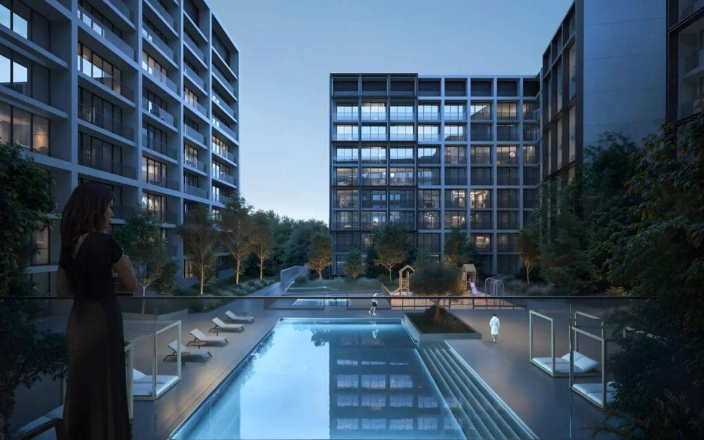 Jenna 1 is uniquely positioned between two distinct lifestyles: a serene landscaped green park with sports facilities on one side, and the bustling, tree-lined West Boulevard filled with shops and restaurants on the other. Residents have exclusive access to a private gym and swimming pool. Every home comes fully fitted with smart home technology and premium white goods as standard — including a cooking range, hood, and washer-dryer.