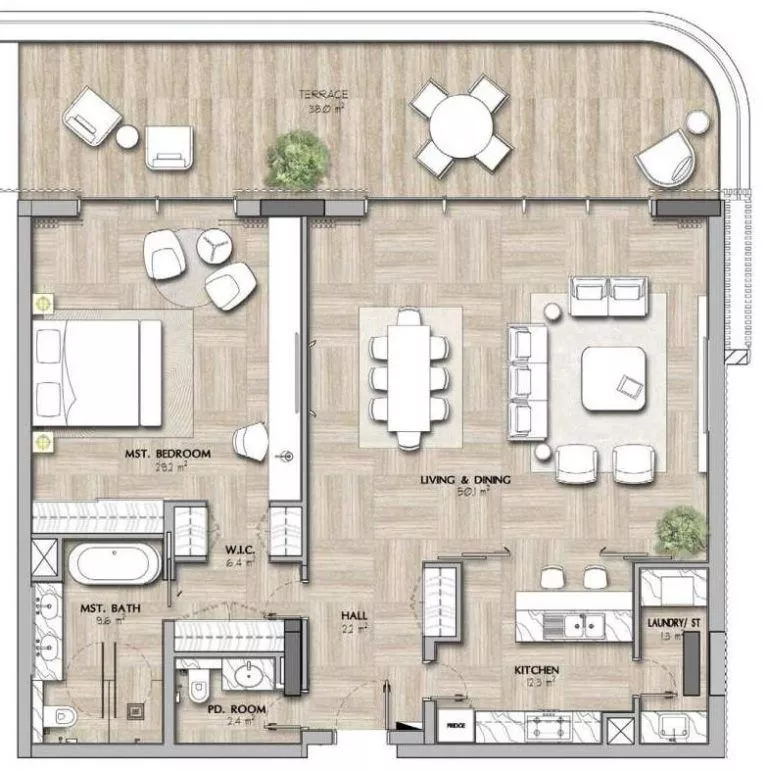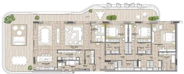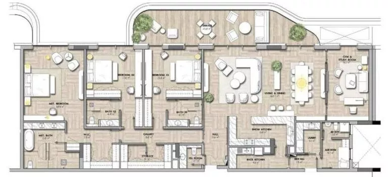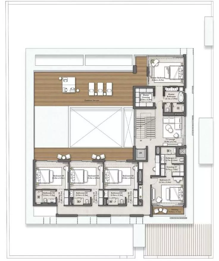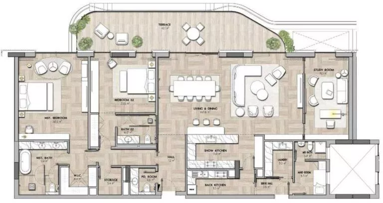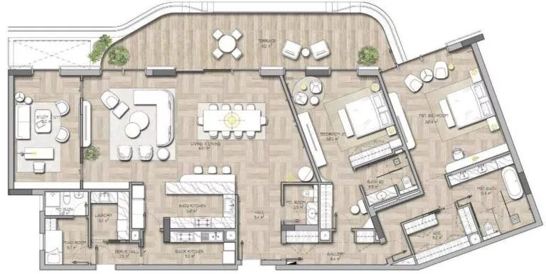In SHA Residences, there are three collections of 4-7 bedroom villas — Beach Villas, Shoreline Villas and Garden Villas, as well as 1-4 bedroom apartments, situated in an 8-storey complex in the island's centre. The area starts from 1,604 sq. ft and goes up to 17,029 sq. ft. Each residence is fully furnished, featuring natural stone, wood and delicately patterned marble in the finishes.