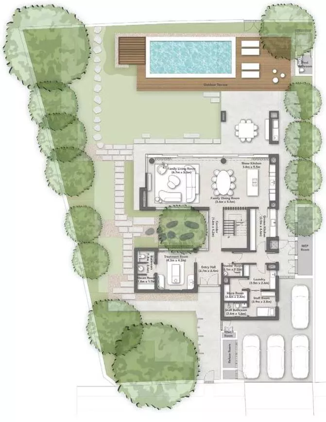 Each residence is equipped with name-brand appliances, top-tier plumbing, along with communications and smart home management systems. The site includes a large pool, spacious terrace, lush green garden and lounge area. Parking spaces for 2-3 cars are also available.