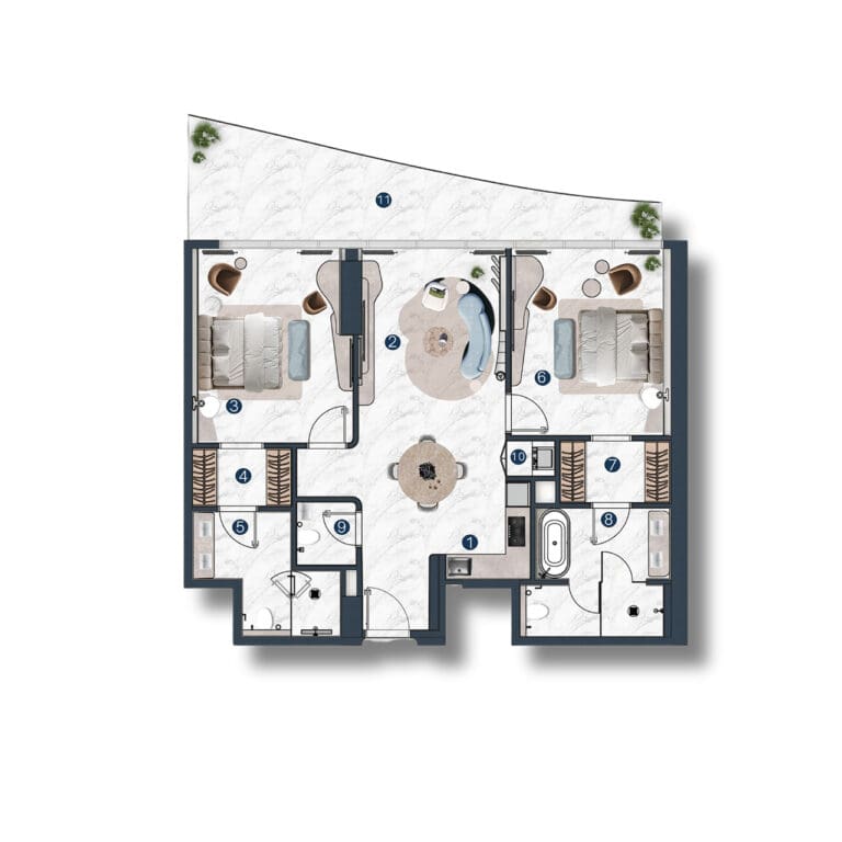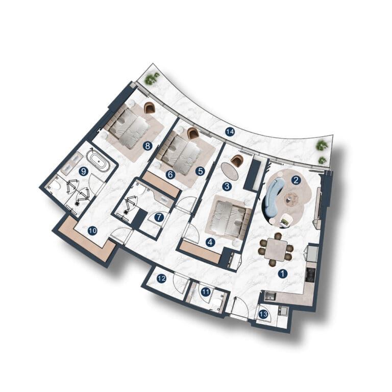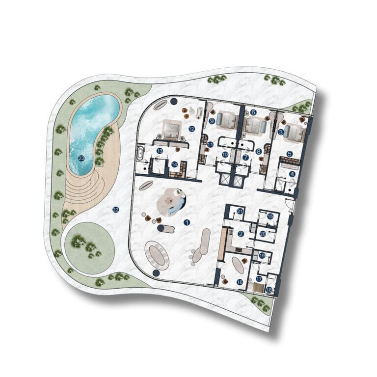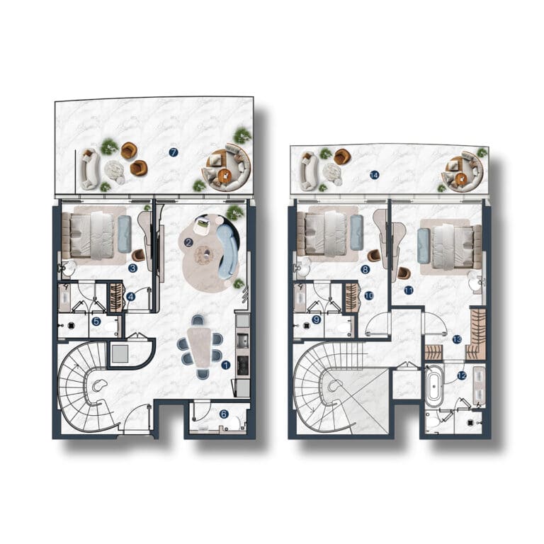 استمتع بتجربة الروعة المعمارية في لا مازوني، وهو مشروع مذهل من شركة ذا لوكس ديفلوبرز في جزيرة المرجان. تصميمه مستوحى من إيقاع البحر ورقصة الرياح، مما يخلق وهماً بمساحة لا حدود لها وطاقة نابضة بالحياة. صممت شركة ديوان للاستشارات الهندسية والمعمارية وشركة HBA للتصميم مساكن حصرية مفروشة بالكامل، بما في ذلك شقق من 1-3 غرف نوم، وشقق دوبلكس، وبنتهاوس، وشاليهات مع أحواض سباحة خاصة. تتراوح مساحة الشقق بين 88 متراً مربعاً و632 متراً مربعاً، وقد صُممت المساكن بألوان فاتحة راقية وتتميز بنوافذ وشرفات واسعة توفر إطلالات بانورامية آسرة على البحر والمناظر الطبيعية الخلابة.