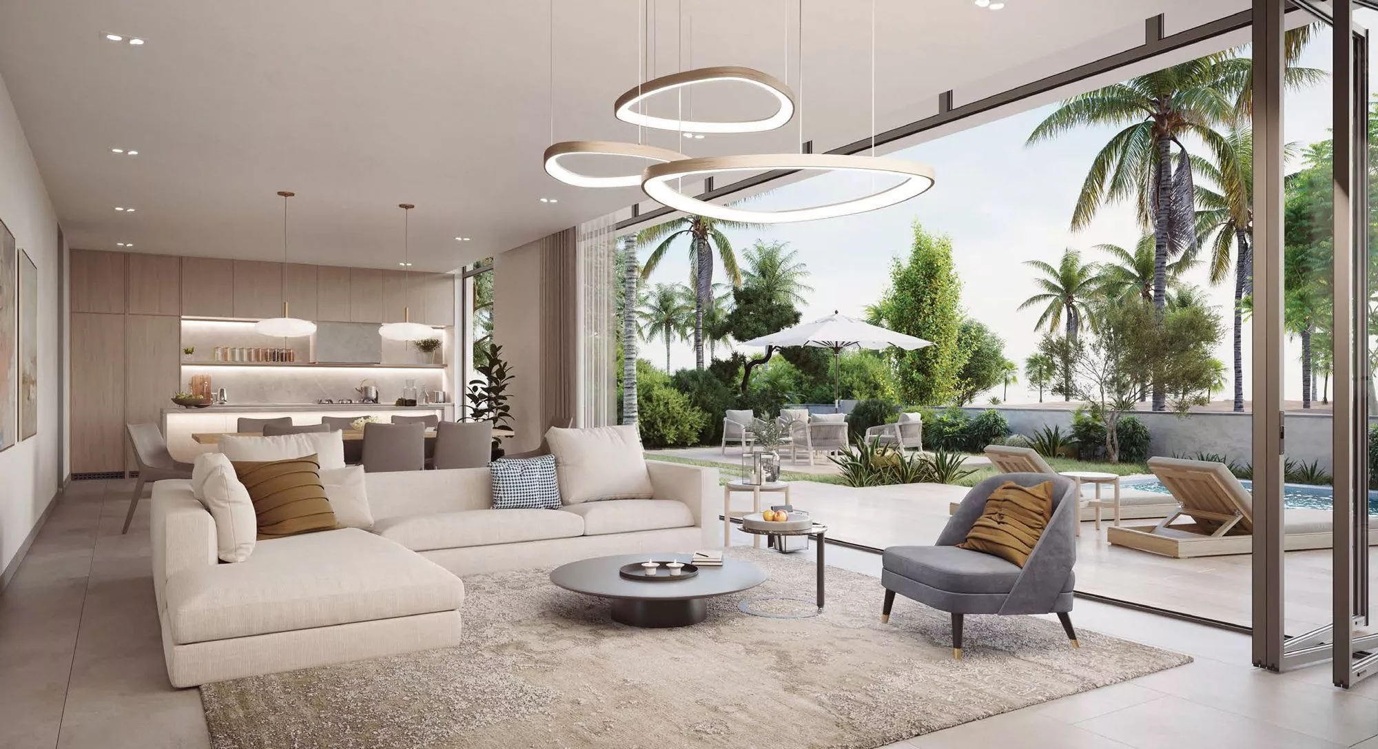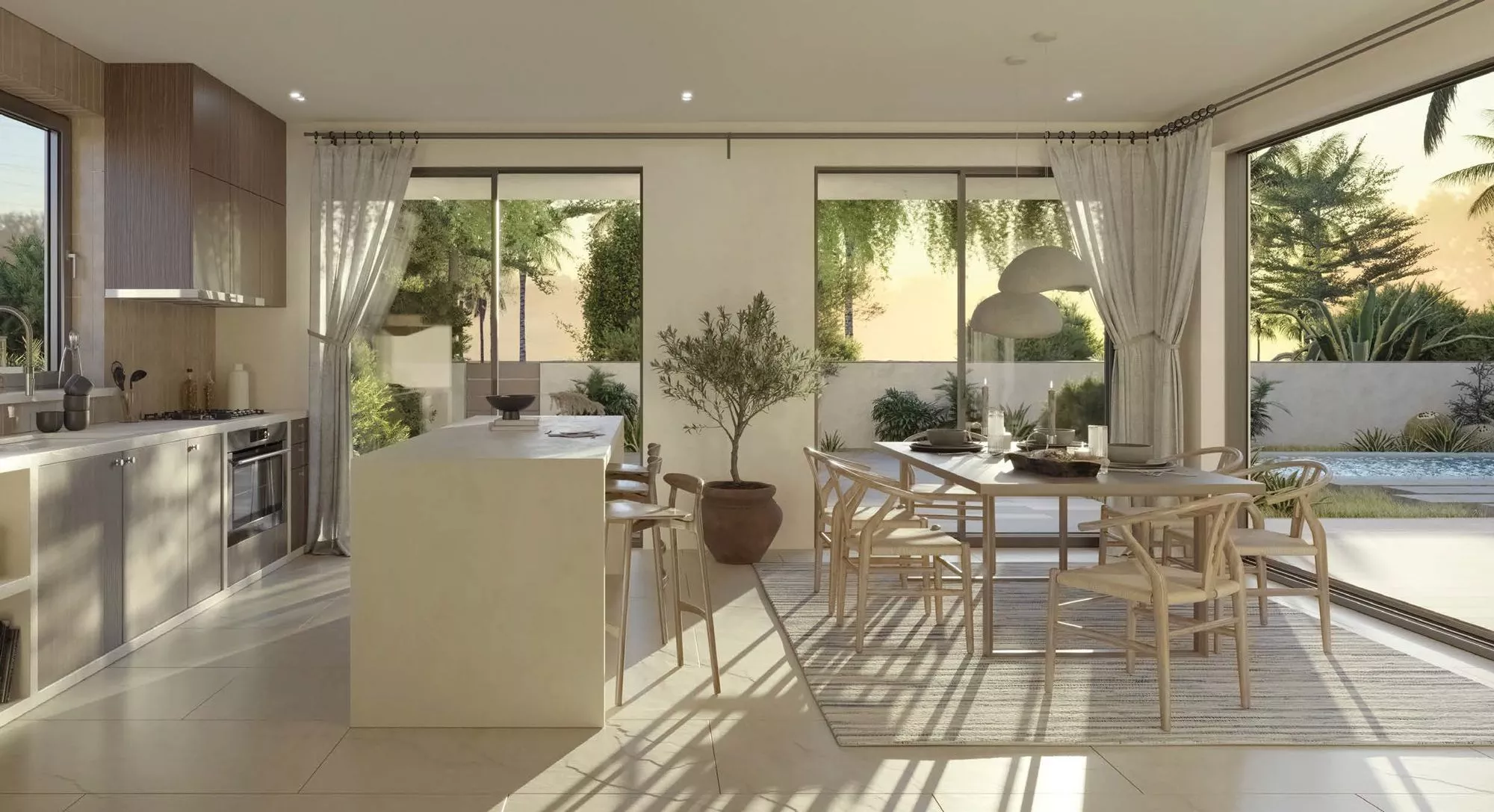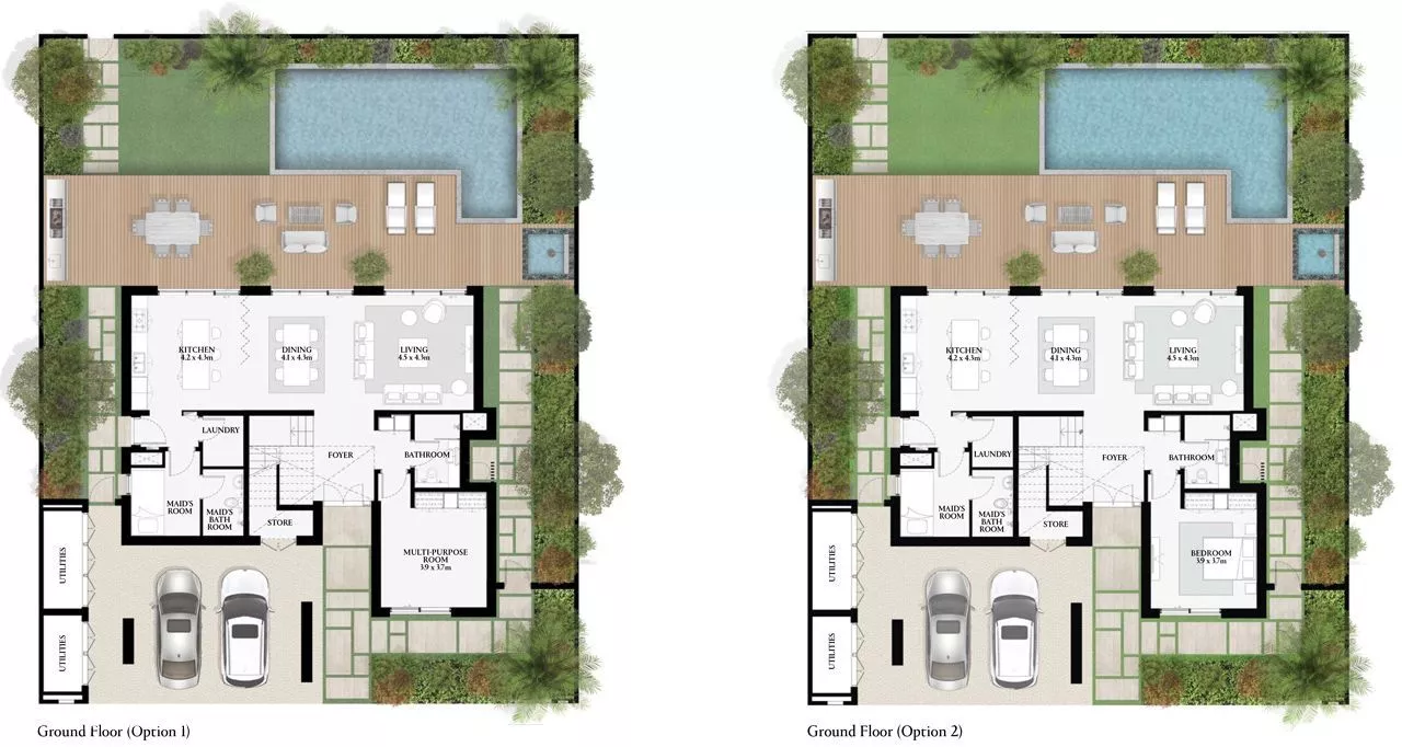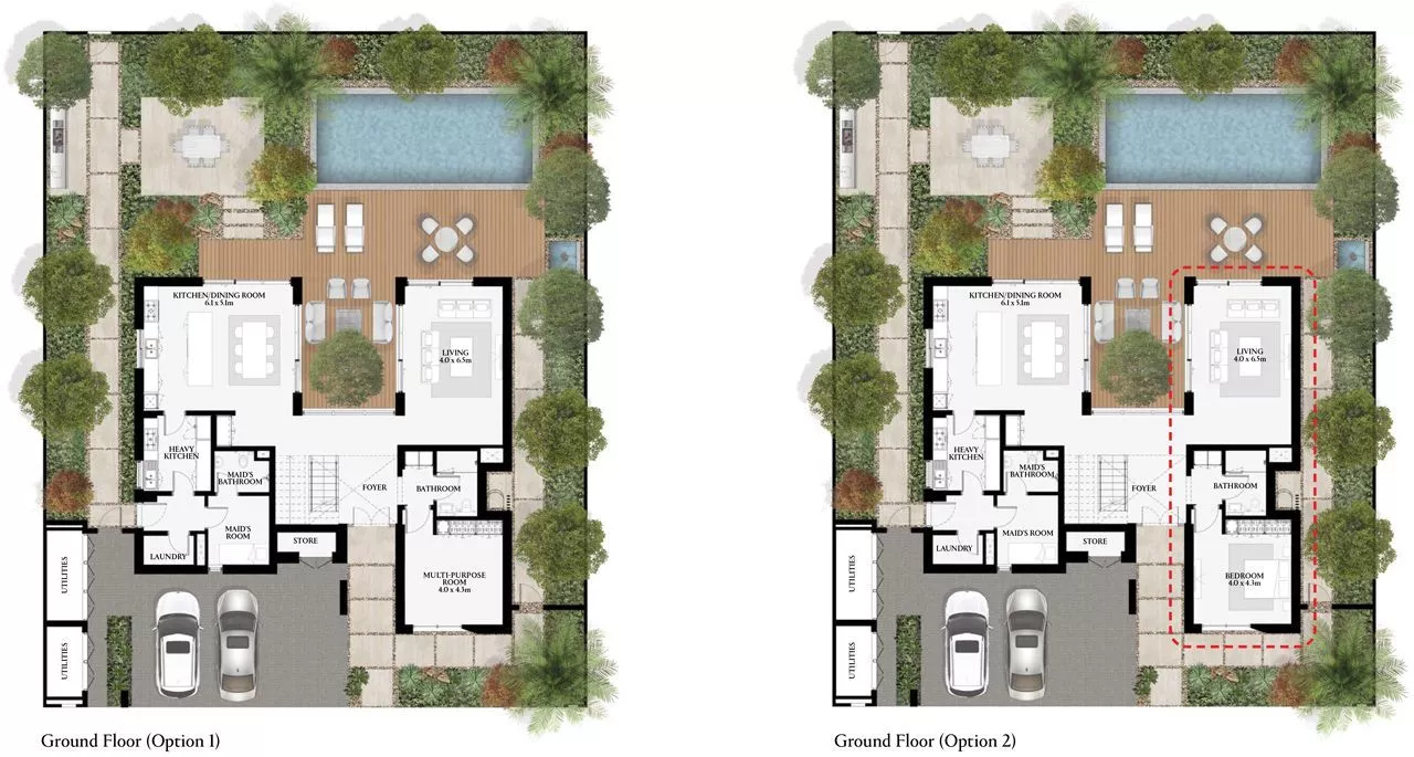 سيتميز كِلا النوعين من الفلل بنوافذ ممتدة من الأرض حتى السقف وأبواب زجاجية منزلقة، مما يوفر وفرة من الضوء الطبيعي طوال اليوم. ستشمل الوحدات غرفة نوم خادمة مع حمام داخلي، بالإضافة إلى مخزن وغرفة غسيل، في حين أن التصميمات المختارة ستحتوي على غرفة متعددة الأغراض. ستحتوي الفلل المكونة من 5 غرف نوم على مطبخين وسيأتي تكوين راوية مع غرفة مخصصة للسائق. كما ستحتوي جميع الوحدات على خزائن مدمجة في جميع غرف النوم وأدوات المطبخ المدمجة.