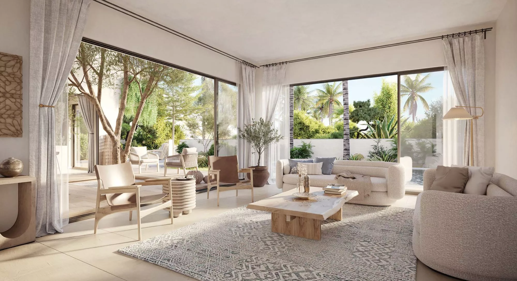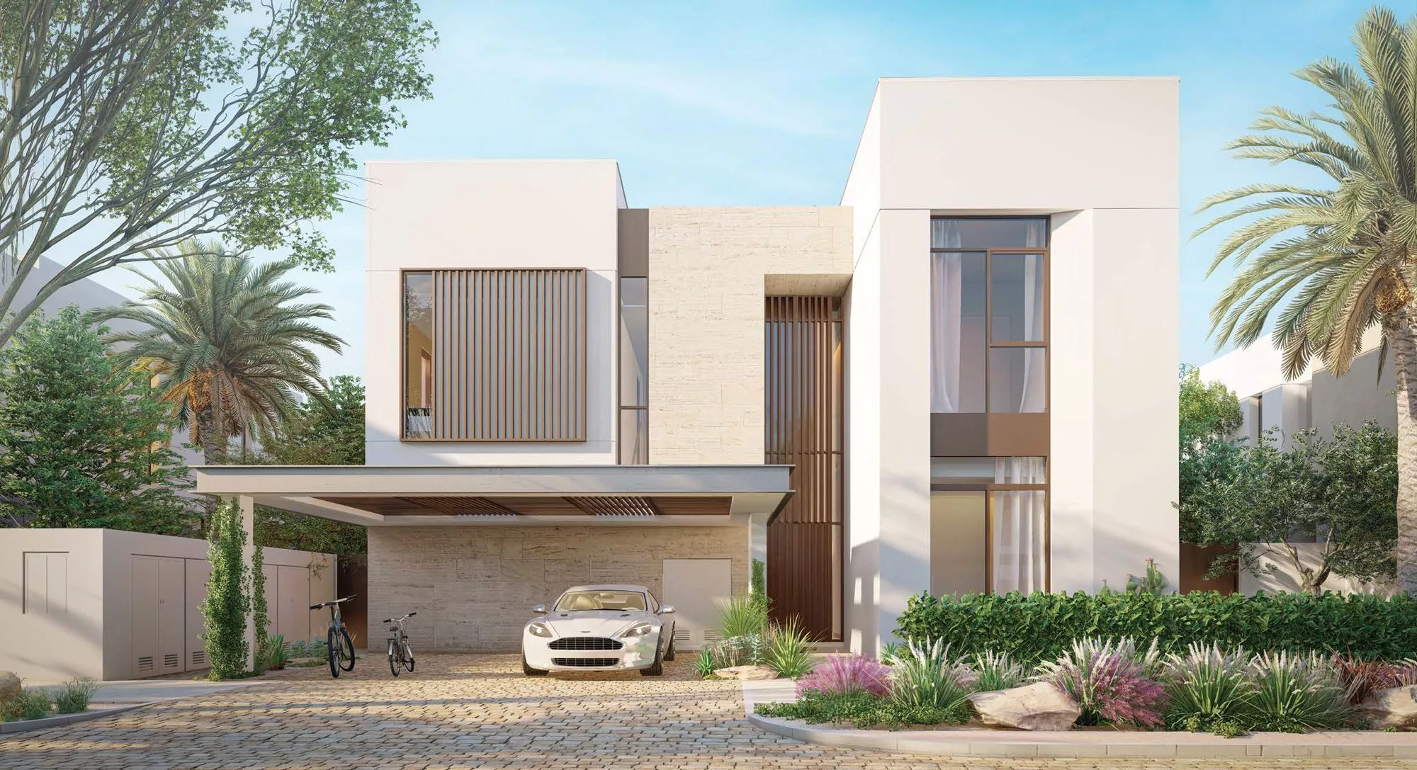 سيكون هناك نوعان من تصاميم الفلل المتاحة: راوية ورحال. ستتميز مساكن راوية بتصميم معاصر تهيمن عليه الخطوط المستقيمة والزوايا الحادة، مع تخطيط مخطط أرضي مفتوح. سيتم استخدام الحجر الطبيعي في التشطيبات في جميع أنحاء مساكن راوية. كما ستجمع الهندسة المعمارية لمساكن الرحال بين التقاليد العربية والميزات الحديثة. سيتم تغطية واجهات الجدران الحجرية بمشربية مزخرفة.