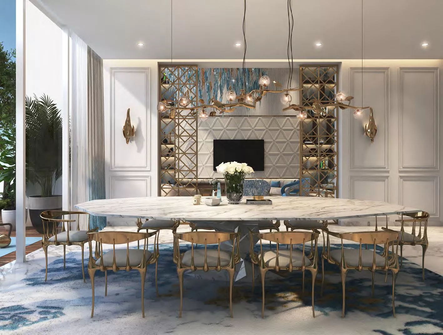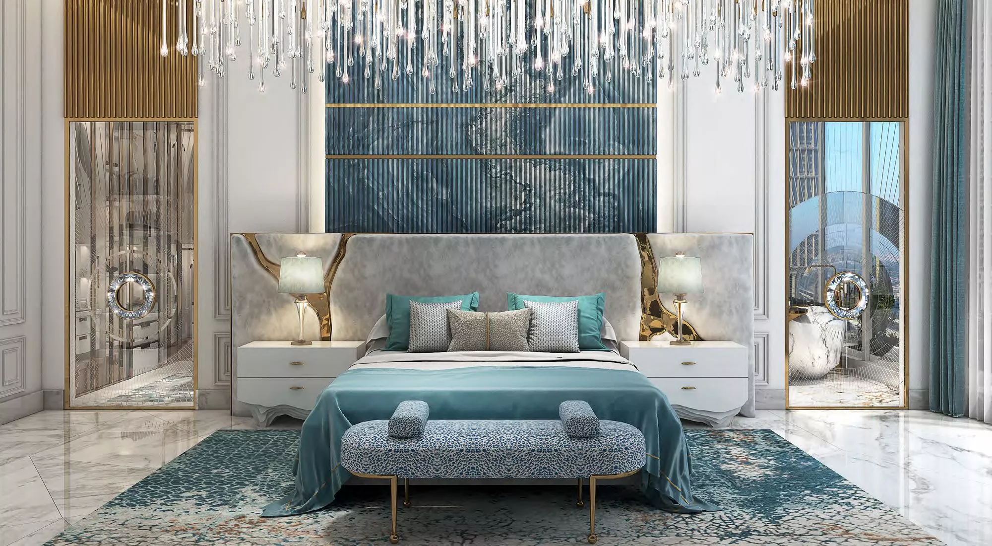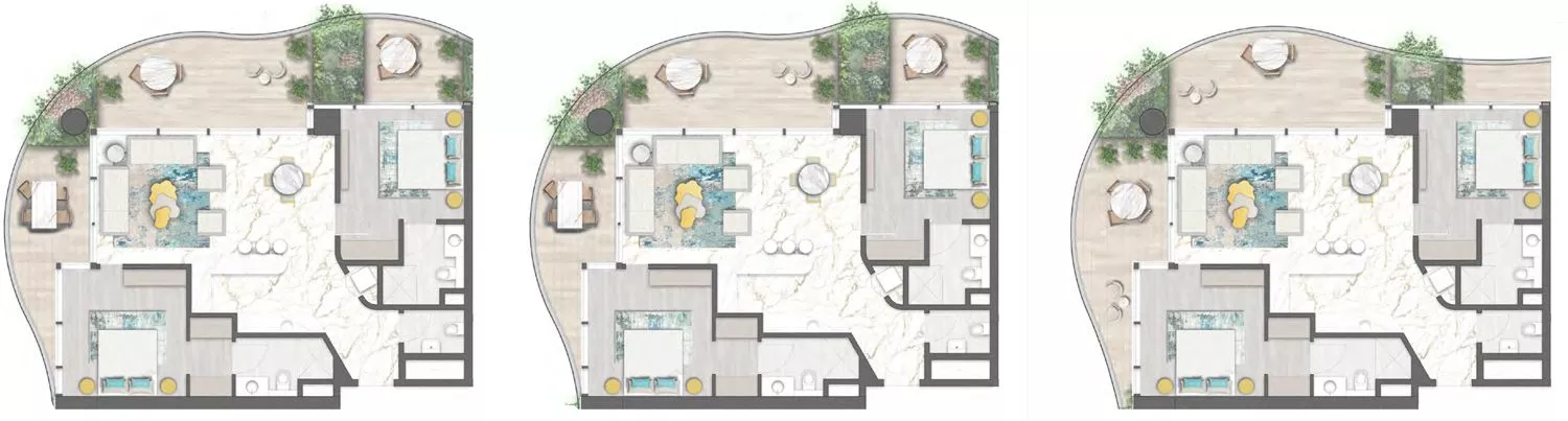 في الوقت نفسه، سيكون التصميم الداخلي والخارجي لشيك تاور متأثراً بتصاميم مجوهرات دي غريسوغونو، مع التركيز على اللون الفيروزي في ناطحات السحاب ليذكرنا بواحد من أكثر الأحجار الكريمة المحبوبة في العالم.