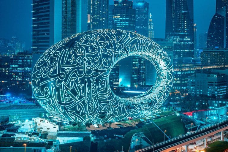 يمكن العثور على متحف المستقبل، الذي تم تسميته كواحد من أجمل المتاحف في العالم من قبل ناشيونال جيوغرافيك، على نفس المسافة. تم إنشاء المتحف بمساعدة أدوات آلية يتم التحكم فيها بواسطة الكمبيوتر، ويضم السطح الخارجي للمتحف نقوشا عربية على واجهته وحديقة مذهلة تضم 100 نوع من النباتات، من بين ميزات أخرى مميزة.