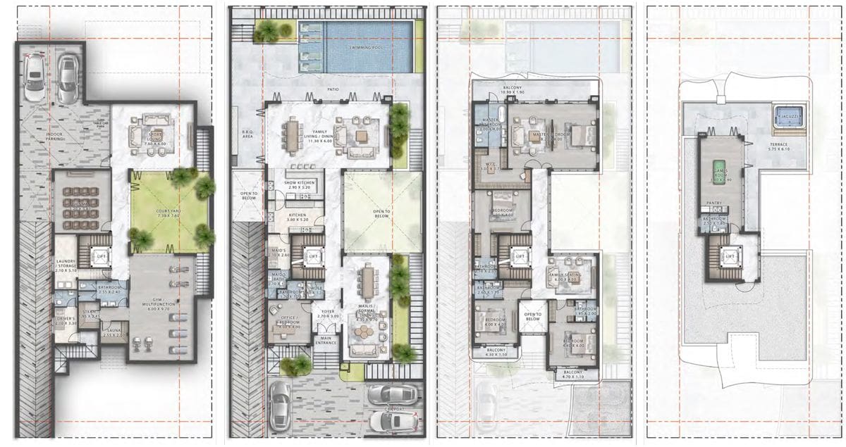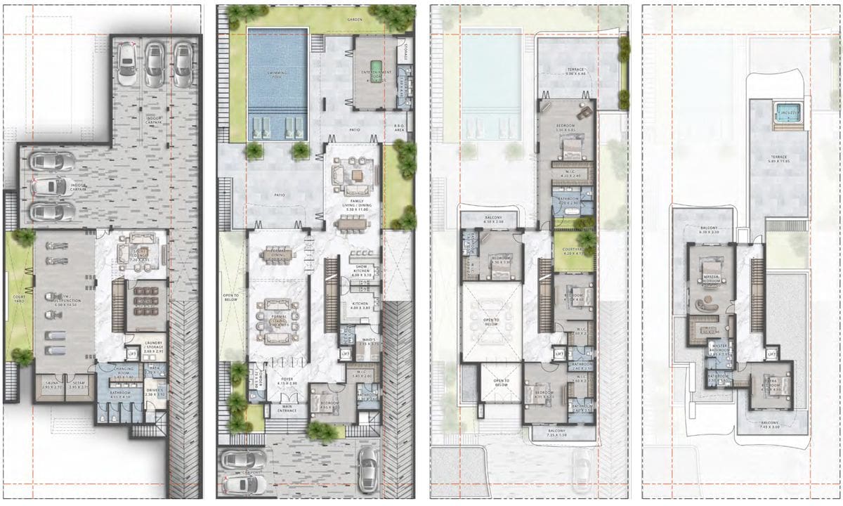 وسيكون لقاطني الفلل المكونة من 6 و 7 غرف نوم على وجه الخصوص وسائل الراحة التالية داخل منازلهم: