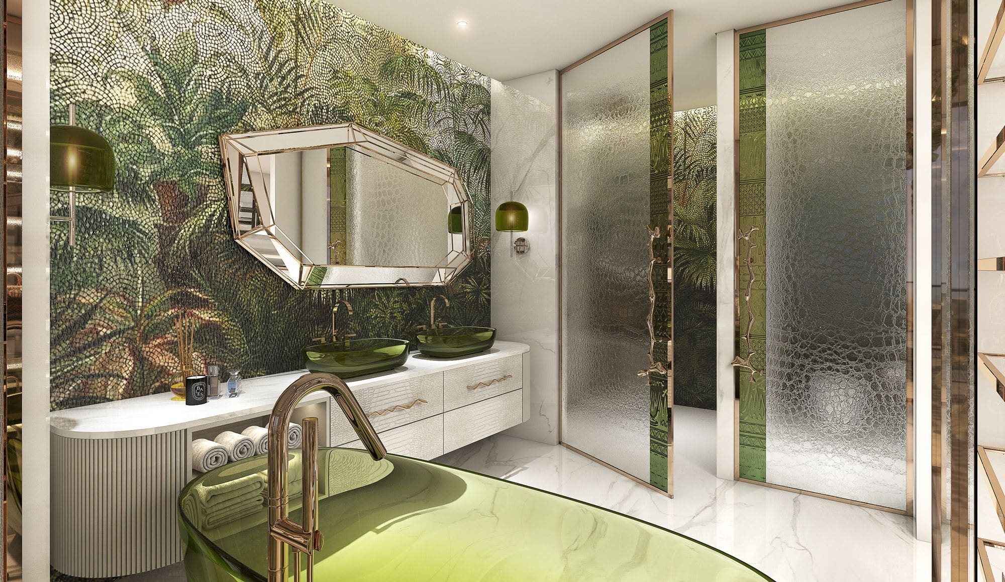 سيتم استكمال المجمع عبر المستويات العليا، بمسبح انفنتي يبلغ ارتفاعه 287 قدماً وبار سوشي كافالي والكبسولات وغرف العلاج الاستوائية وعلاجات لف الجسم بأوراق الموز ودش العلاج المائي وكبسولات الأحلام.