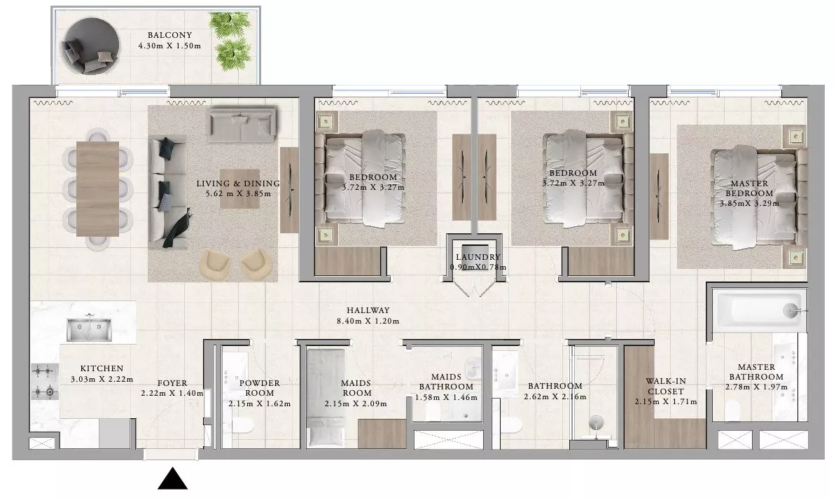 يحتوي كل سكن على شرفة خاصة به، في حين ستحتوي بعض الوحدات على غرفة خادمة أيضاً. تأتي المطابخ مع الأجهزة الحديثة وستحتوي غرف النوم على خزائن ملابس أو خزائن مدمجة. تتراوح مساحة العقارات بين 721 و 1,797 قدم مربع.