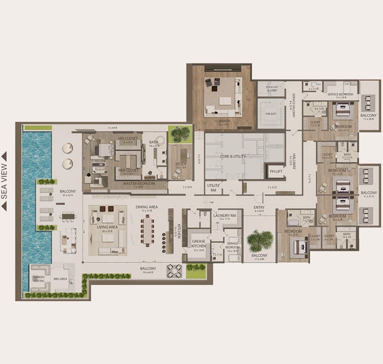 يضم المشروع مجموعة محدودة من الوحدات المفروشة بالكامل، تشمل أجنحة سيغنتشر من غرفة إلى 4 غرف نوم، دوبلكسات من 4 غرف نوم، وبنتهاوس ملكي.