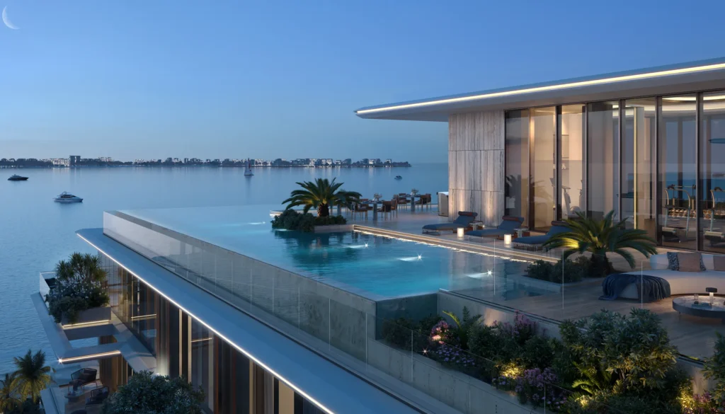 يوفر المشروع لسكانه مشهد غروب خلاب وإطلالات بانورامية مُبْهِرَة عَبْرَ المَسْبَح اللّامُتَناهي والبار المائي ورَدْهَة الإسترخاء، ضمن أجواء تَتَّسِم بِالفخامة والخصوصية.