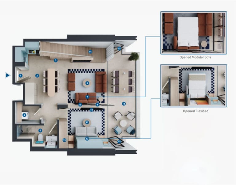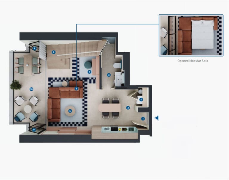 روف هوم دبي مارينا هو برج مذهل يقع على واحدة من آخر قطع الأراضي الرئيسية في دبي مارينا. يقدم هذا المشروع الحصري الذي طورته شركة إرث إيليت للتطوير ذ.م.م بالشراكة مع العلامة التجارية الشهيرة روف للفنادق مجموعة متنوعة من خيارات المعيشة المفروشة بالكامل، بدءاً من الاستوديوهات إلى الشقق بغرفة نوم واحدة والسكاي لوفت الفسيحة ذات الغرفة والغرفتي نوم بمساحة تتراوح بين 398 قدم مربع و1507 قدم مربع. كما تتاح للمقيمين فرصة الجمع بين وحدتين سكنيتين لزيادة مساحة المعيشة. تتميز المساكن بإطلالات بانورامية خلابة على المدينة والقناة المائية والبحر. تتميز التصاميم المصممة بعناية بمساحات دراسية وغرف غسيل ومساحات تخزين وخزائن مريحة، بينما توفر الأسرّة المرنة تعدد الاستخدامات وتحويل غرف المعيشة إلى غرف نوم حسب الحاجة. يستفيد مالكو العقارات من ضمان لمدة 5 سنوات، مما يضمن راحة البال. سيتمتع سكان هذا المجمع الفاخر ببنية تحتية عالمية، وسائل راحة متميزة، وخدمات لا مثيل لها، بما في ذلك نظام انتقائي مصمم خصيصاً لتلبية جميع احتياجاتهم.