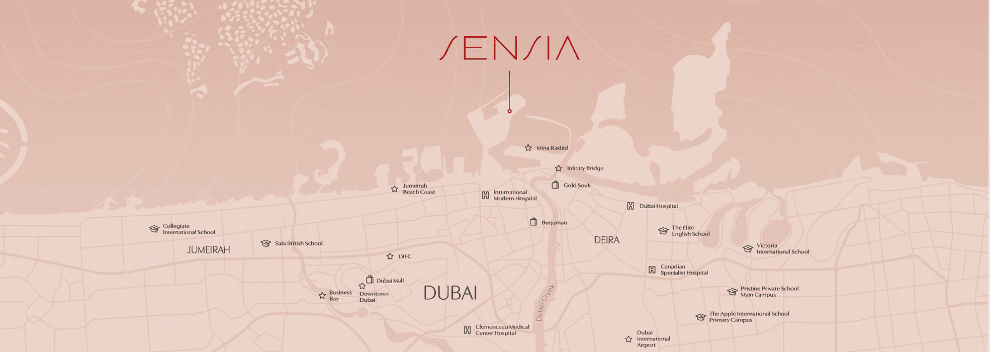 يتمتع مشروع سينسيا بموقع استراتيجي على الواجهة البحرية وعلى مقربة من أكثر الوجهات المرغوبة في دبي، ويحظى باهتمام استثنائي من المشترين الدوليين. ويسهم هذا الطلب المرتفع، إلى جانب سوق العقارات المستقر في المدينة، في جعل سينسيا أصل رئيسي لتحقيق مكاسب رأسمالية كبيرة.
