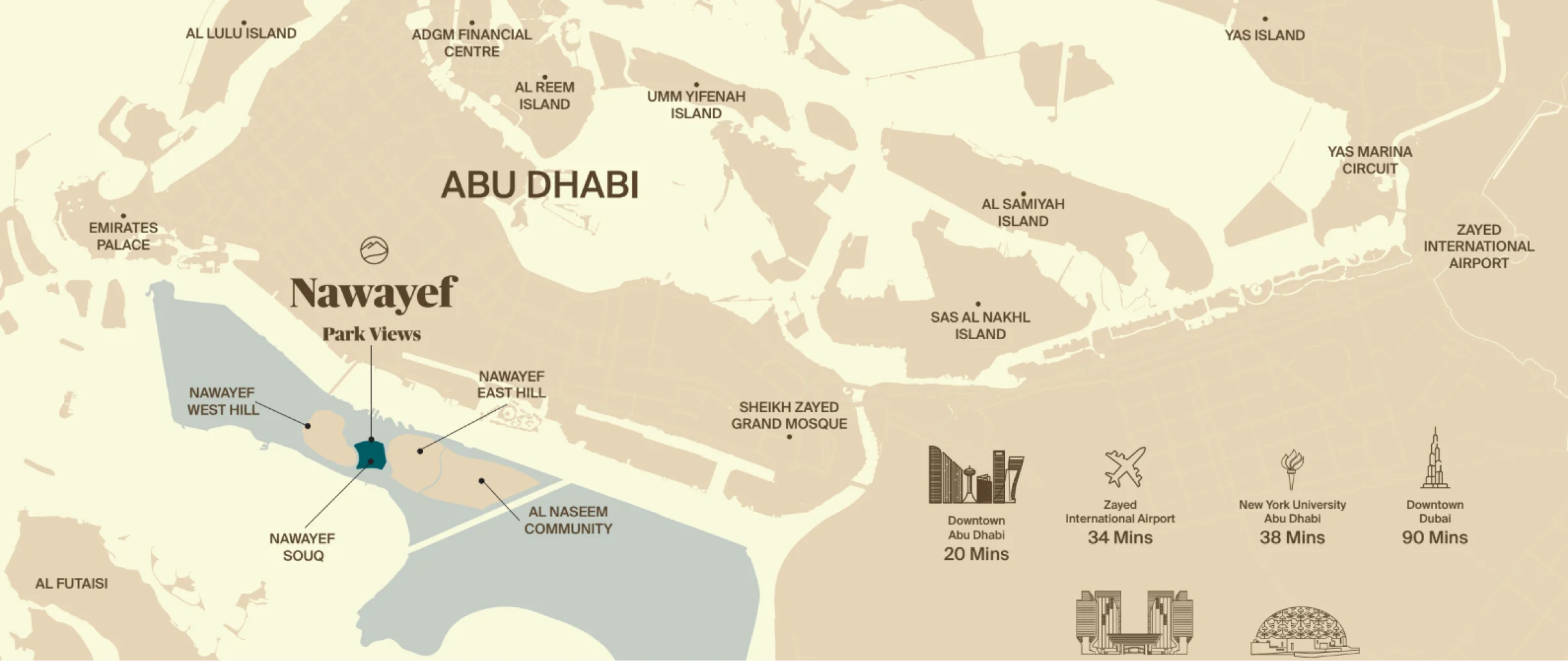 يقدم مشروع نوايف بارك فيوز فرصة استثمارية جذابة في جزيرة الحديريات، أحد أكثر المواقع الناشئة الواعدة في أبوظبي. إن الموقع الاستراتيجي للمشروع، بالإضافة إلى وسائل الراحة المتميزة وقربه من مناطق الجذب الرئيسية في المدينة، يجعله مؤهلاً لتحقيق نمو استثماري قوي. كما يتميز المشروع بمزيج فريد من وسائل الراحة الفاخرة وأسلوب الحياة العصرية مما يجعله جذاباً للغاية لكل من المستخدمين النهائيين والمستثمرين.