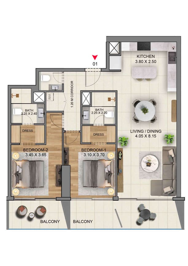 شقق ذات غرفتي نوم