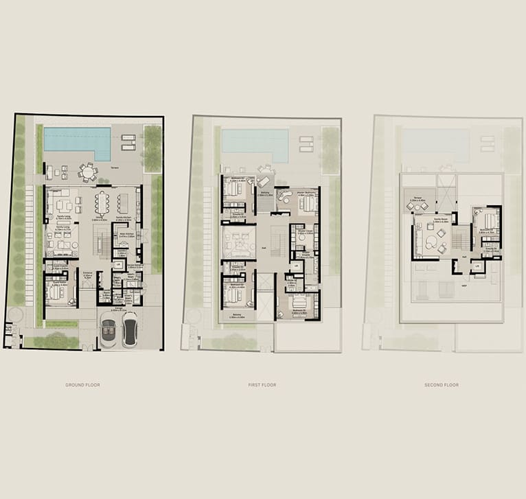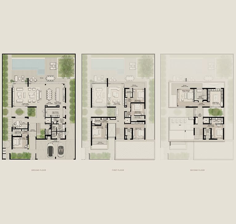 تتوفر منازل تاونهاوس من 3 إلى 5 غرف نوم، وفلل من 3 إلى 7 غرف نوم، بتفاصيل عالية الجودة وتصاميم عصرية.
