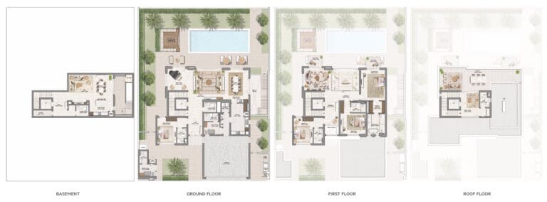 يوفر المشروع فللاً من 4 غرف نوم مع أقبية وتراسات على السطح، بمساحات مبنية تتراوح بين 7,880 و8,099 قدم²، على قطع أراضٍ بمتوسط 8,800 قدم².