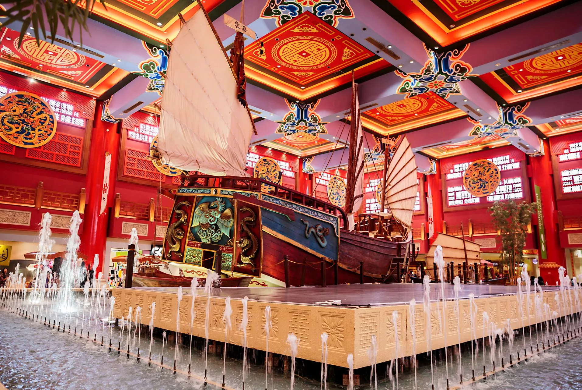 تم تسمية ابن بطوطة مول وموضوعه على اسم ابن بطوطة، المستكشف الذي سافر إلى الأندلس (إسبانيا الحديثة) والصين وبلاد فارس ومصر والهند وتونس. يتكون المركز التجاري من عدة ساحات، تم تصميم كل منها بعد الدولة المعينة التي زارها المستكشف.